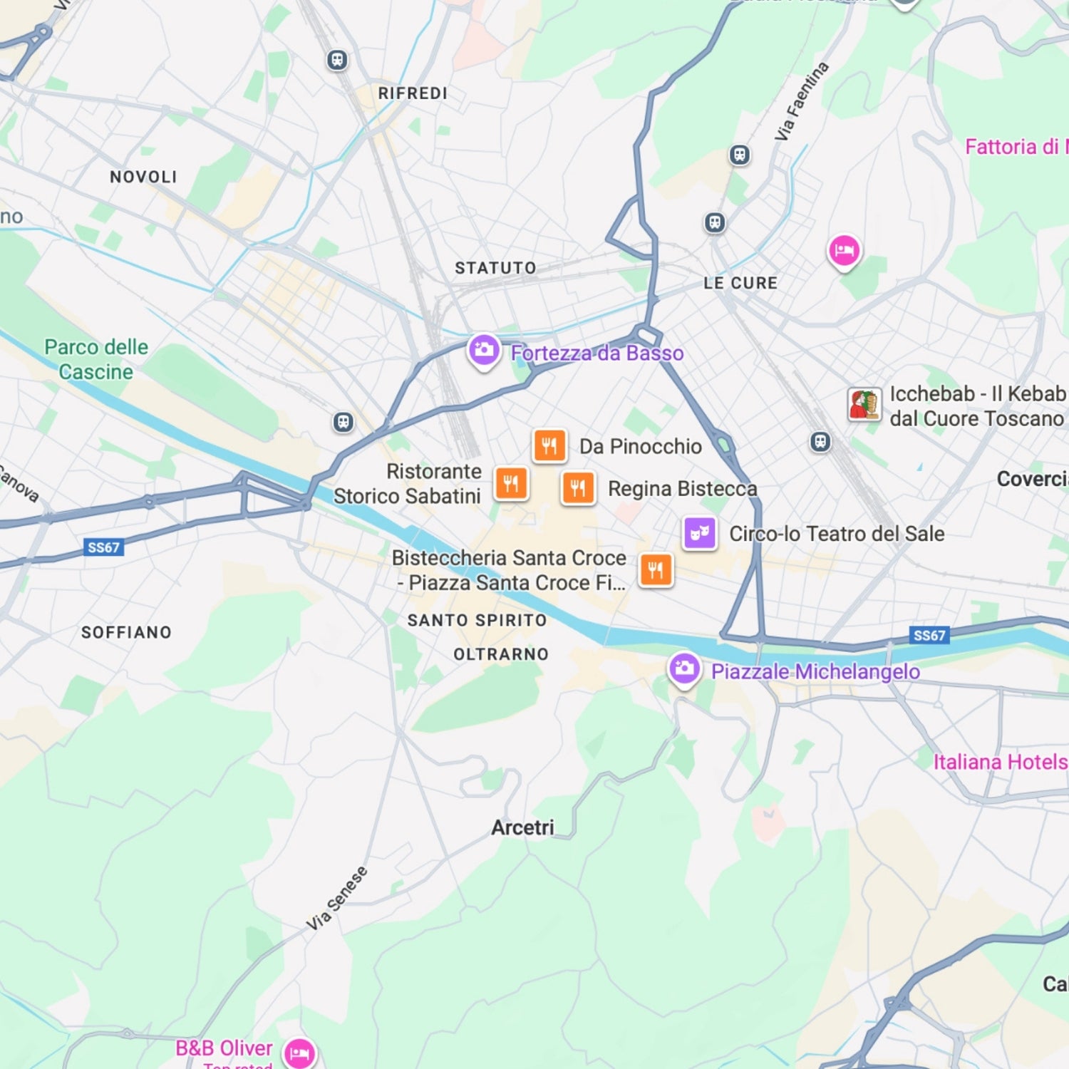 On the Florence attractions map – more than 200 places in one spot. This interactive Google Maps guide is designed for travelers planning a trip to Florence and looking for the best things to see in the city of Renaissance. Historical landmarks, museums, viewpoints, restaurants, cafés, nightlife spots and more – everything in one easy-to-use map on your device.